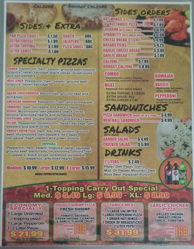 With these specialty pizzas, Douggy Fresh Pizza ensures there's something for every craving. Whether you're into meaty indulgence or fruity refreshment, their menu has it all, ready to deliver a burst of flavor with every bite.